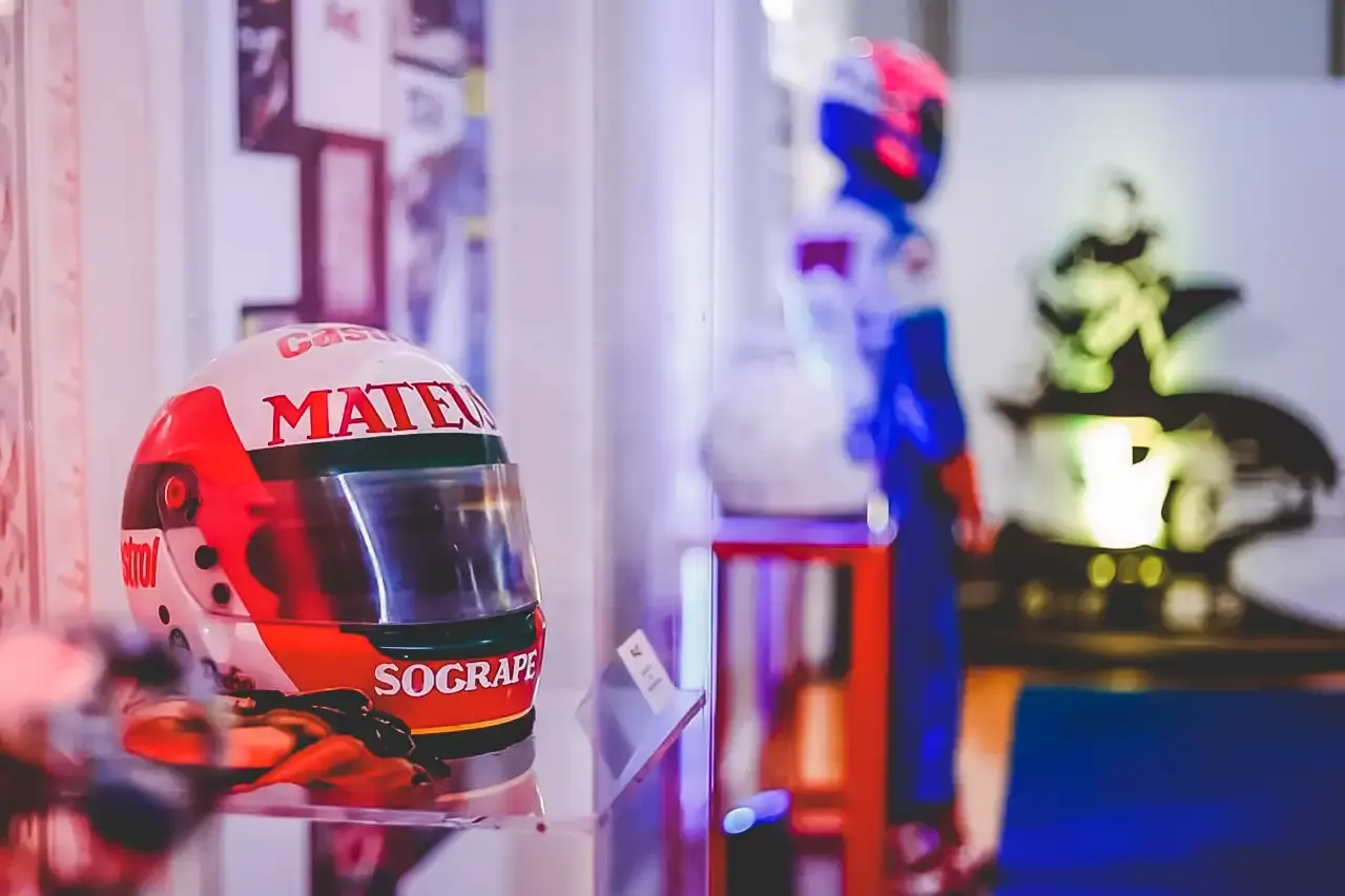 A exposição conta ainda com painéis infográficos, fatos e capacetes de pilotos como Ayrton Senna, Pedro Lamy, Nicha Cabral eTiago Monteiro, bem como memorabilia, que contam a história dos anos Dourados do Grande Circo em Portugal.