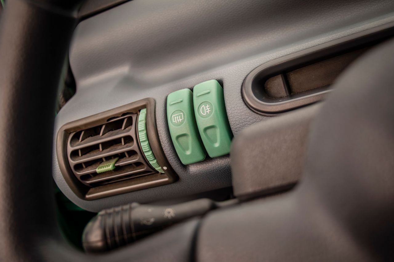 Para o lançamento, foram escolhidas apenas quatro cores alegres, que ajudavam a perceber o “espírito Twingo”: vermelho “coral”, amarelo “indiano”, azul “ultramarino” e verde “coentro”. O exemplar anunciado na Motorbest é precisamente desta última cor, que é talvez a que melhor assenta a um Twingo da primeira geração, pois condiz com os detalhes do interior como os botões da ventilação, das luzes, etc.