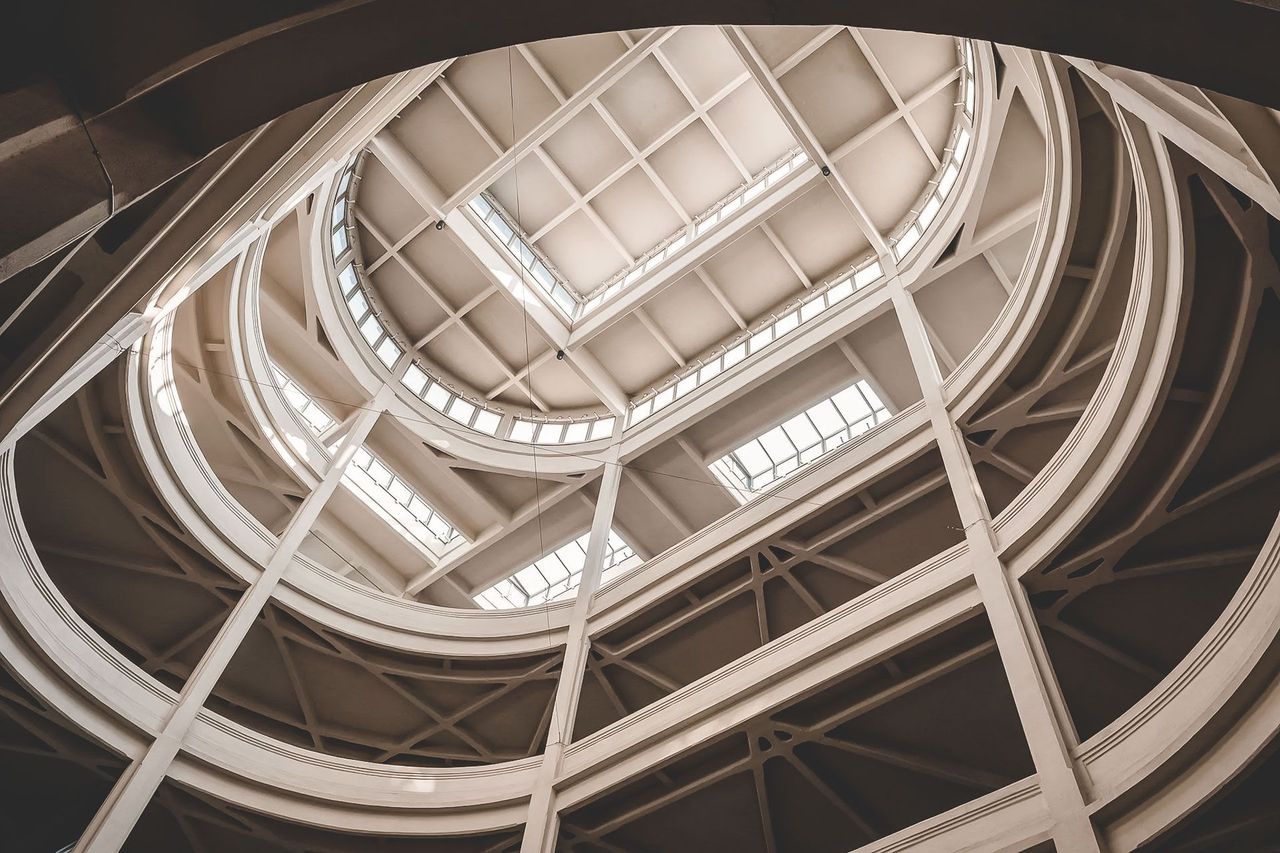 O imponente edifício industrial tem cinco andares e é sustentado por uma estrutura de betão armado com pilares espaçados a cada seis metros. A construção é formada por dois blocos ligados por cinco elementos transversais ,que possibilitam tanto a circulação horizontal como vertical. A distribuição desses blocos de ligação forma três pátios internos descobertos.