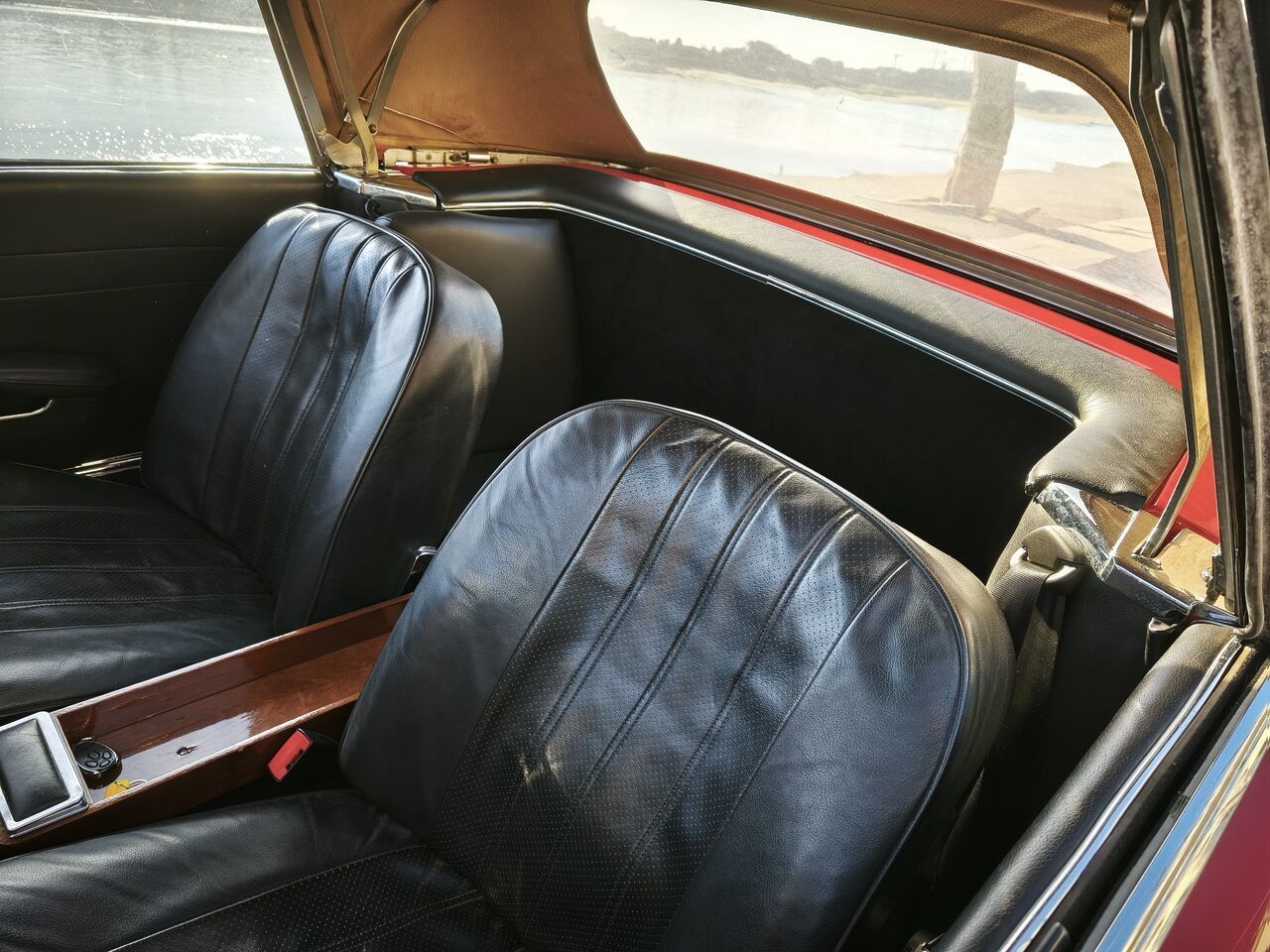 Muito bem mantido até a data e com toda a manutenção em dia, este exemplar de 1965 de cor vermelha, ainda com um bom nível de brilho na pintura, dispõe de capota de lona preta e o característico hard-top, estilo “pagode”, pintado na cor da carroçaria. Veículo com interiores em pele preta e o tradicional tablier de madeira ainda em estado muito aceitável. O veículo encontra-se em muito boa condição de preservação.