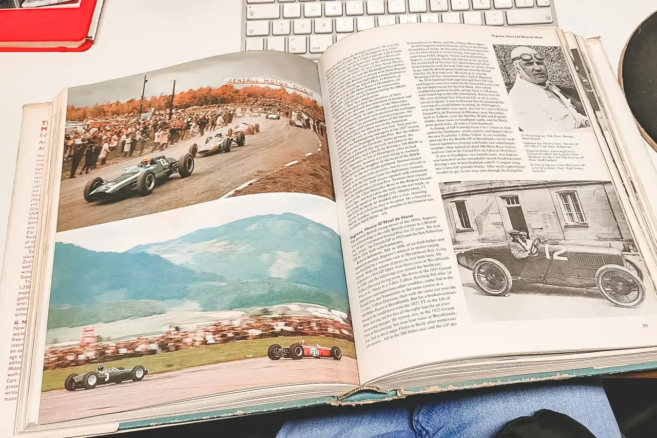 A Encyclopaedia of Motorsport chegou-me num lote de livros e anuários que comprei à distância a um entusiasta de Cascais que não cheguei a conhecer, mas que, definitivamente, não era da minha geração e que, provavelmente, não tinha entusiastas na descendência. A compra aconteceu entre gestos de um cavalheirismo e elegância que já não existem. Os livros foram entregues na Old Garage Cascais, do meu amigo Duarte Pinto Coelho, e chegaram a mim dias mais tarde, pelas mãos de outro amigo.