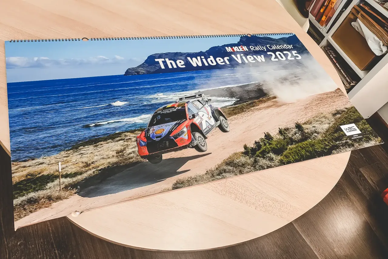 Por isso, este calendário de grande formato (95x48cm) é um dos principais produtos no calendário da McKlein, reunindo as mais espectaculares imagens do WRC de 2024. O formato “wide” favorece muito as imagens, em particular a do incontornável salto de Fafe, com o habitual “mar de gente”.
