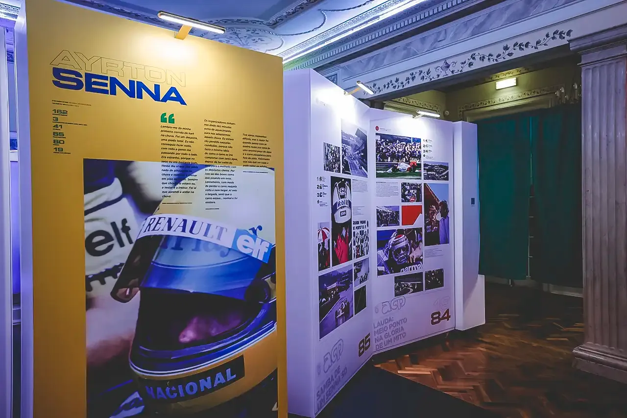 A exposição conta ainda com painéis infográficos, fatos e capacetes de pilotos como Ayrton Senna, Pedro Lamy, Nicha Cabral eTiago Monteiro, bem como memorabilia, que contam a história dos anos Dourados do Grande Circo em Portugal.