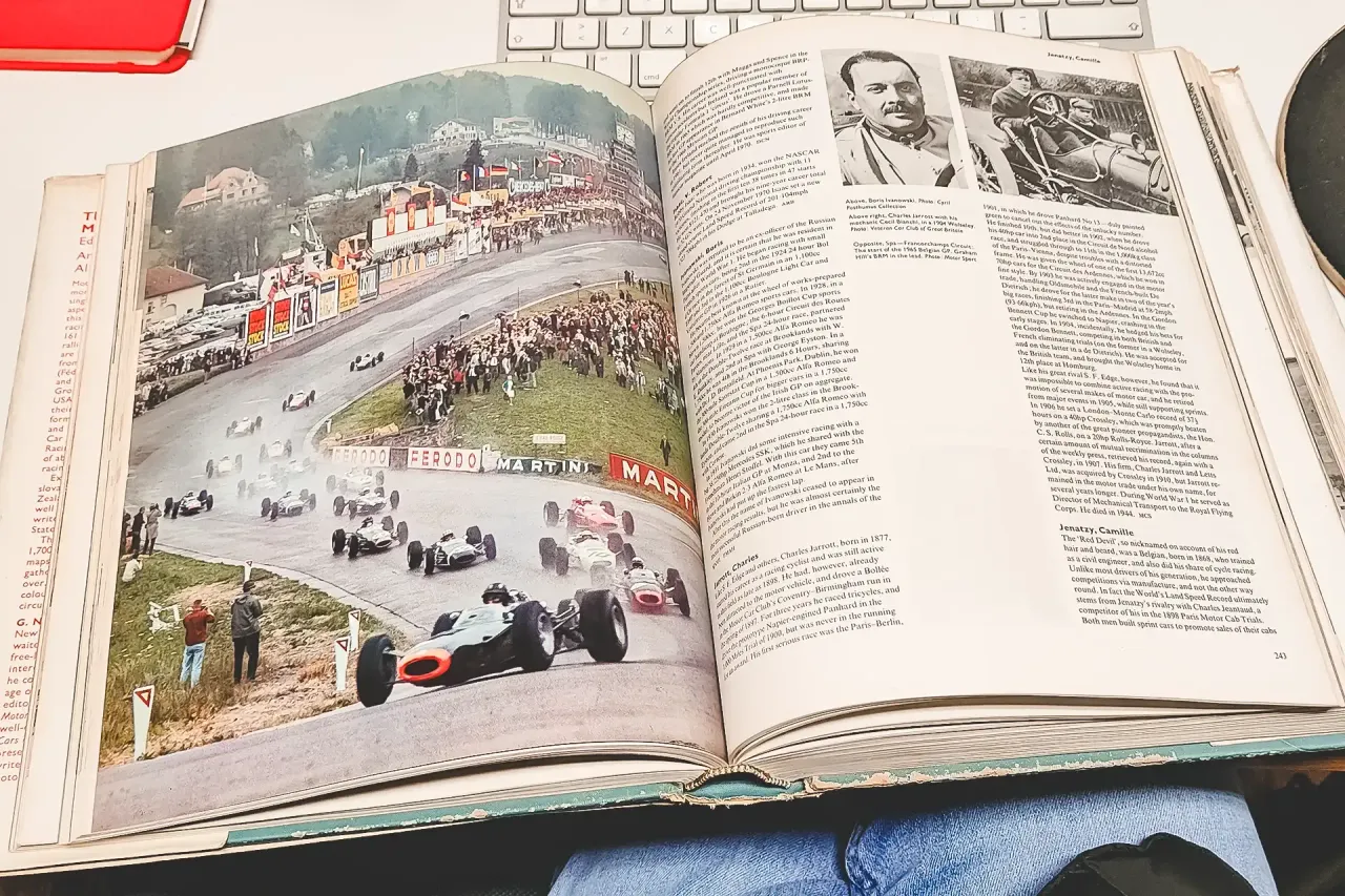 A Encyclopaedia of Motorsport chegou-me num lote de livros e anuários que comprei à distância a um entusiasta de Cascais que não cheguei a conhecer, mas que, definitivamente, não era da minha geração e que, provavelmente, não tinha entusiastas na descendência. A compra aconteceu entre gestos de um cavalheirismo e elegância que já não existem. Os livros foram entregues na Old Garage Cascais, do meu amigo Duarte Pinto Coelho, e chegaram a mim dias mais tarde, pelas mãos de outro amigo.
