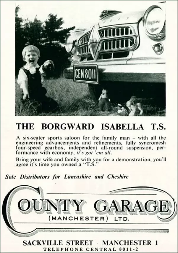 Confortáveis, espaçosos e com um habitáculo luminoso, os Borgward gozaram de muita popularidade mas, apesar disso, a empresa faliu. Diz-se que terá havido um conluio a favor da BMW através de um gestor nomeado pelo estado com assento no conselho de administração de ambas as empresas. Nunca ficou provada essa conspiração, porque o detective Claxon estava ocupado.