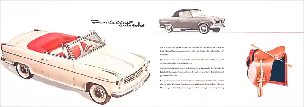 Em 1955 foi lançado o modelo Cabriolet, com motor de 75cv. Essa mecânica viria a ser adoptada também pelo elegante Isabella Coupé e mais tarde daria origem às versões Sedan TS e Combi TS.