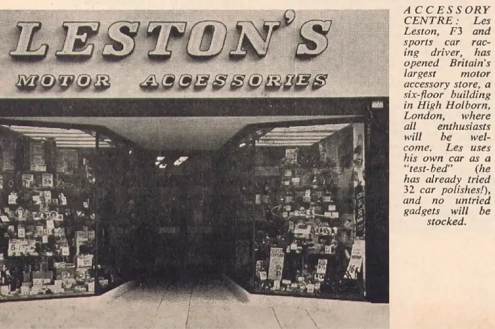 Leston proved to be an excellent marketeer, investing on an effective campaign to promote his products, featuring Graham Hill and also Peter Proctor, an English driver who, at Goodwood in 1966, was seriously scarred by flames, having sustained third degree burns over 65% of his body.