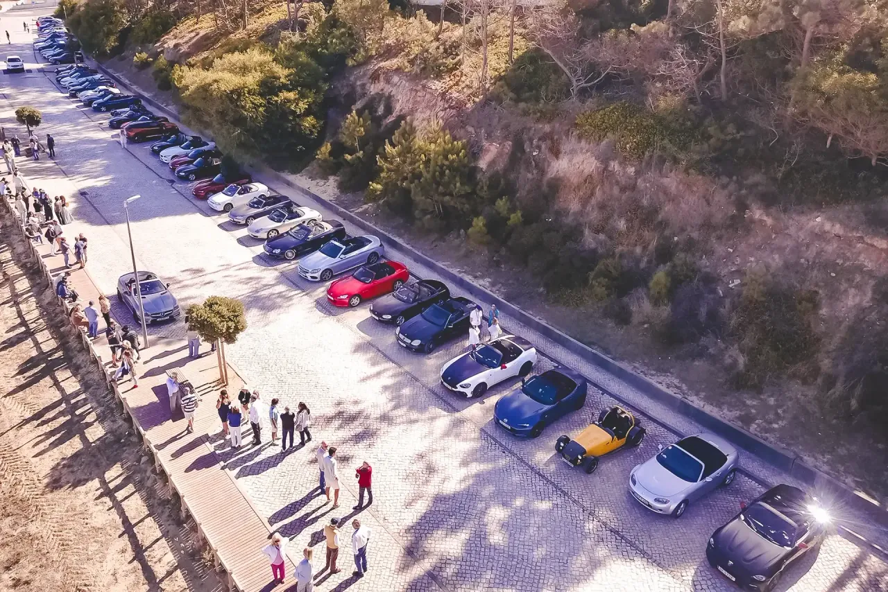 O encontro teve início na Fábricas das Tortas Azeitonense, onde os quase 100 participantes puderam fazer o “check in” enquanto tomavam um café acompanhado pelo bolo típico da região. Dali seguiram em caravana até à Lagoa de Albufeira, Cabo Espichel e Castelo de Sesimbra, atravessando o ar perfumado das vinhas e pautado pelo charme das quintas tradicionais.