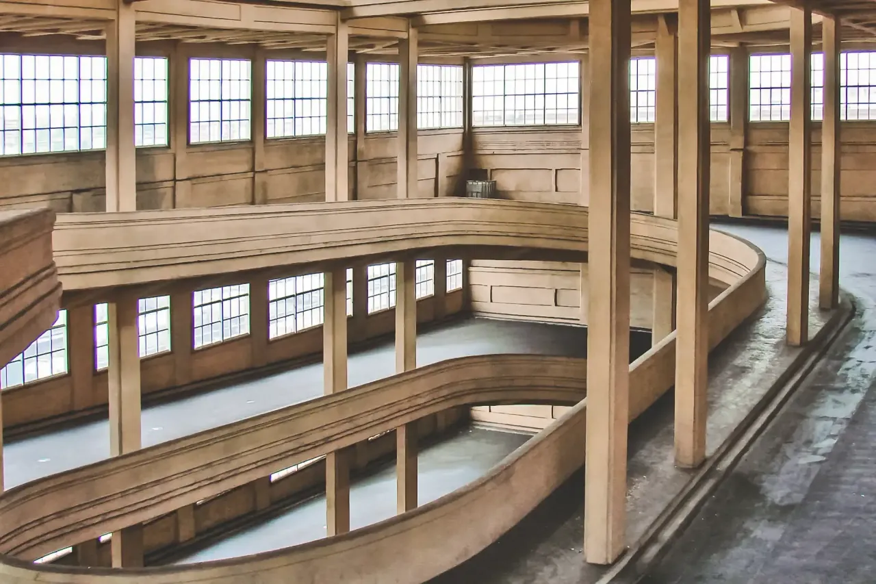 Esta arquitectura definida em função do ciclo de produção era inspirada no caso da Ford, mas aqui com o benefício extra de permitir que, à saída da produção, os automóveis pudessem ser testados logo ali, no topo do edifício.