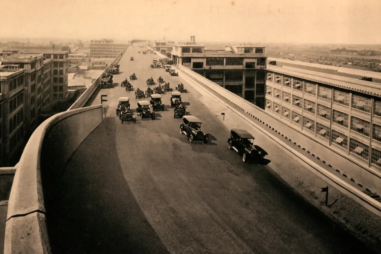 Os automóveis ali fabricados seguiam o percurso de produção ascendente através de rampas helicoidais que conectavam os pavimentos distribuídos nos 27 metros de altura da fábrica. Estas rampas, pelo seu desenho e estrutura de grande beleza arquitectónica, acabaram por se tornar, a par da pista, noutro ícone do mundo automóvel.