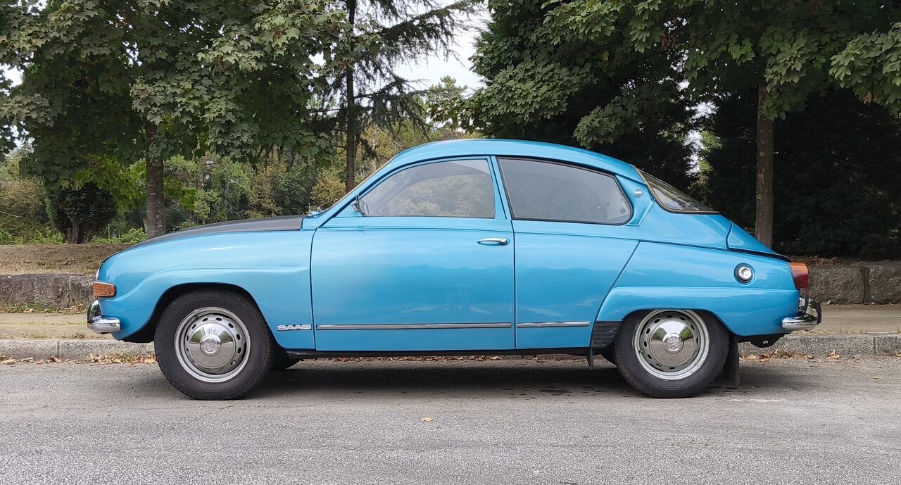 Este Saab 96 V4 de fabrico em 1971, entrou em Portugal oriundo das antigas colónias em 1979 e apresenta-se num estado exemplar, tendo sido alvo de restauro recente onde teve uma pintura nova, os interiores totalmente restaurados e estofados de novo, e a mecânica em perfeito funcionamento. Está pronto a rodar muitos mais quilómetros.