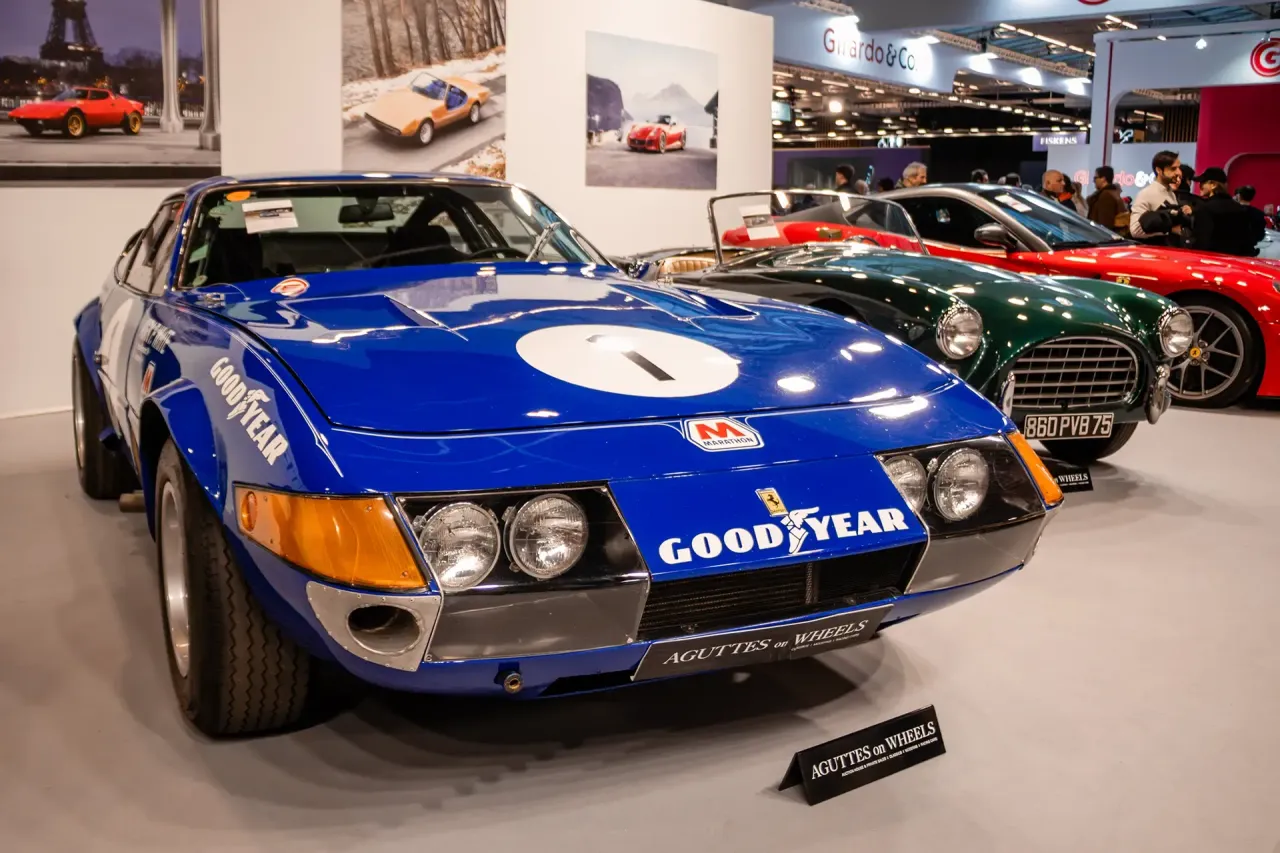 A Artcurial expôs no seu espaço um belíssimo Ferrari Daytona da primeira geração, com faróis cobertos por plexiglass - em vez dos posteriores escamoteáveis – e em verde metalizado.