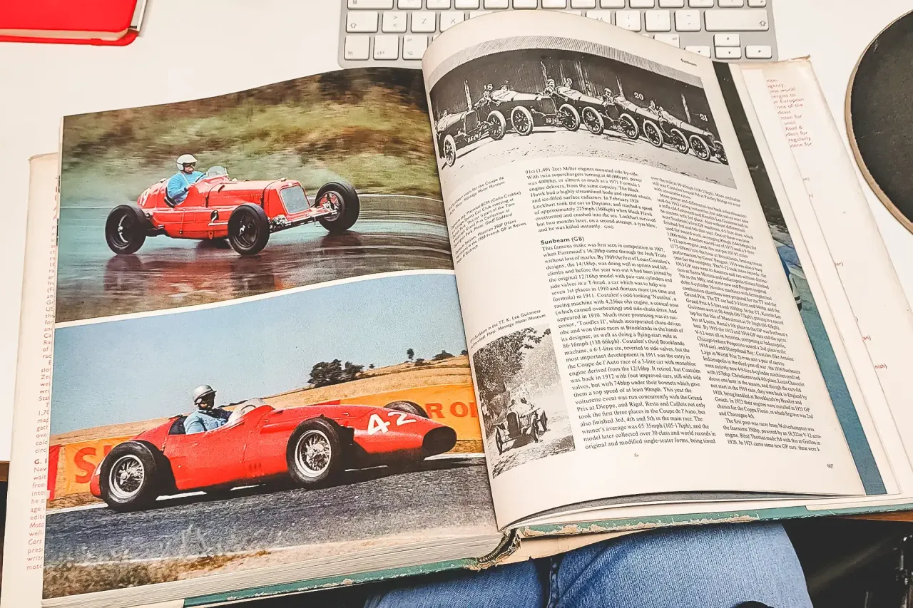A Encyclopaedia of Motorsport chegou-me num lote de livros e anuários que comprei à distância a um entusiasta de Cascais que não cheguei a conhecer, mas que, definitivamente, não era da minha geração e que, provavelmente, não tinha entusiastas na descendência. A compra aconteceu entre gestos de um cavalheirismo e elegância que já não existem. Os livros foram entregues na Old Garage Cascais, do meu amigo Duarte Pinto Coelho, e chegaram a mim dias mais tarde, pelas mãos de outro amigo.