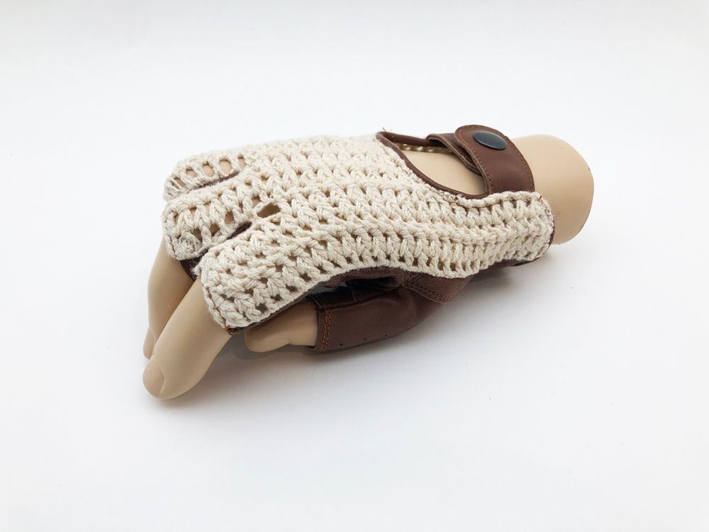 Luvas Novas de Condução em Pele e Crochet - Modelo Moss