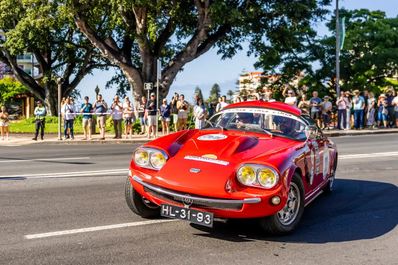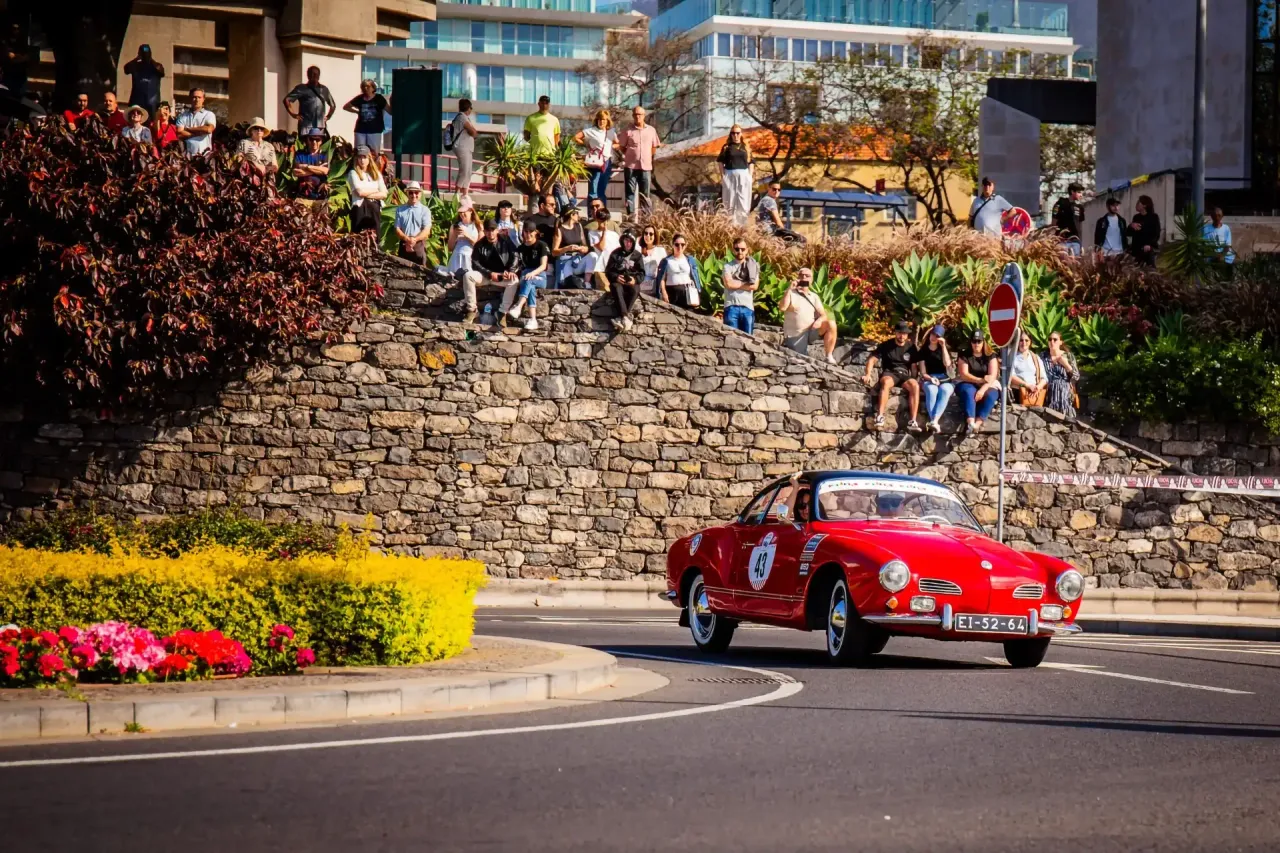 Na manhã de domingo, 57 máquinas alinharam-se para percorrer o traçado histórico desenhado nas ruas do Funchal, para alegria do imenso público que se junta nos passeios, jardins e varandas.