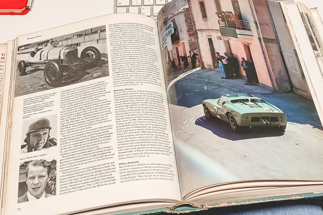A Encyclopaedia of Motorsport chegou-me num lote de livros e anuários que comprei à distância a um entusiasta de Cascais que não cheguei a conhecer, mas que, definitivamente, não era da minha geração e que, provavelmente, não tinha entusiastas na descendência. A compra aconteceu entre gestos de um cavalheirismo e elegância que já não existem. Os livros foram entregues na Old Garage Cascais, do meu amigo Duarte Pinto Coelho, e chegaram a mim dias mais tarde, pelas mãos de outro amigo.