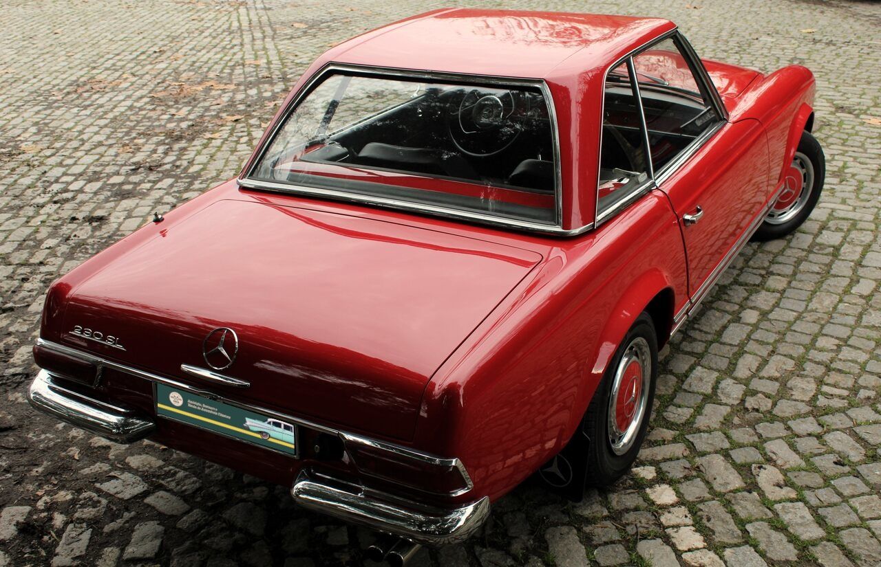 Elegante Mercedes-Benz 230 SL de 1965 em muito bom estado e com todos os acessórios originais.