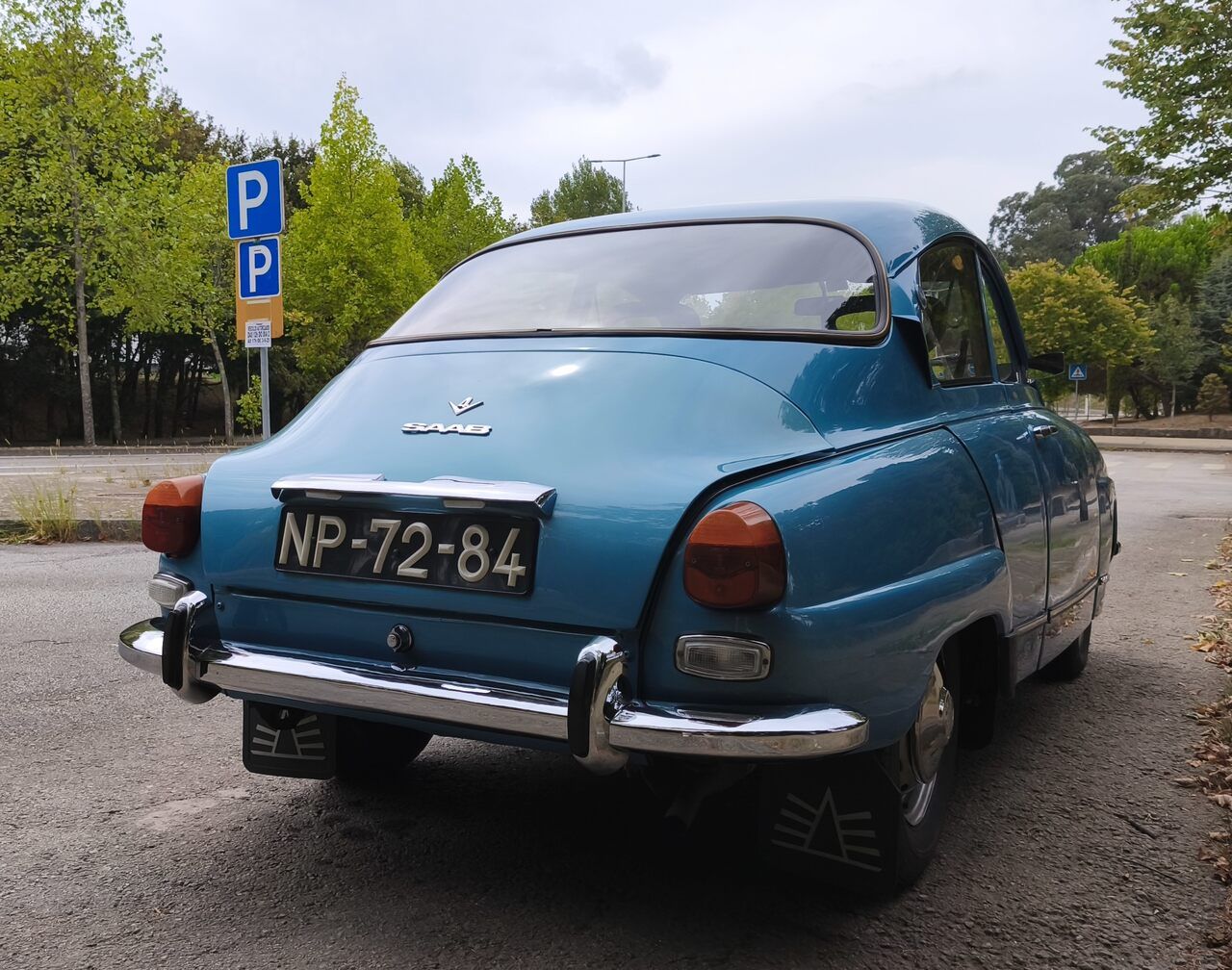 Este Saab 96 V4 de fabrico em 1971, entrou em Portugal oriundo das antigas colónias em 1979 e apresenta-se num estado exemplar, tendo sido alvo de restauro recente onde teve uma pintura nova, os interiores totalmente restaurados e estofados de novo, e a mecânica em perfeito funcionamento. Está pronto a rodar muitos mais quilómetros.