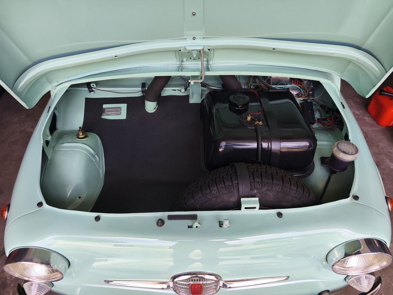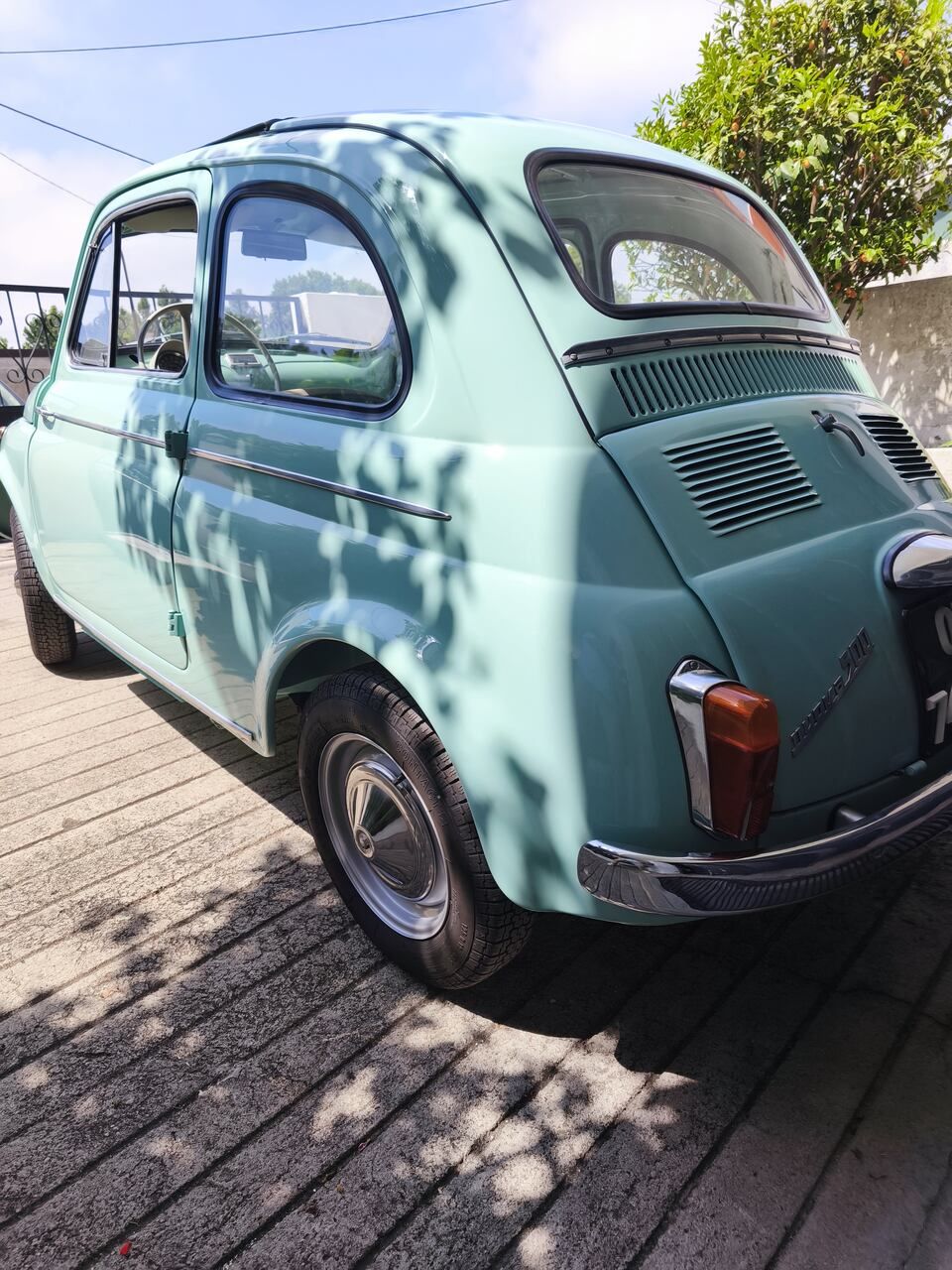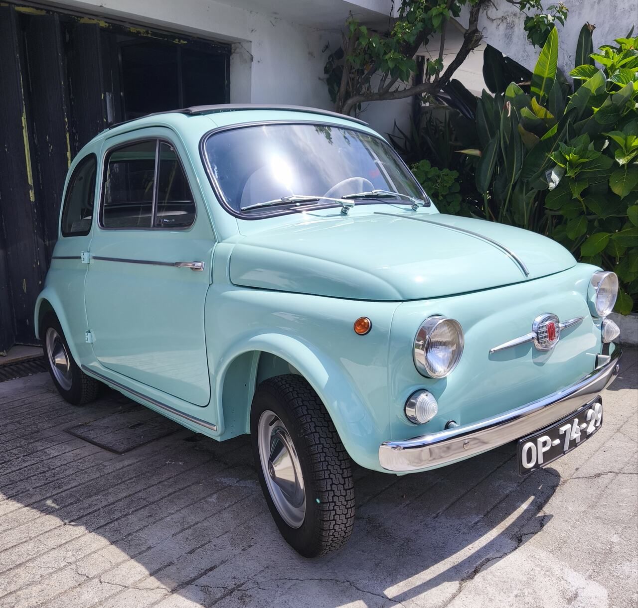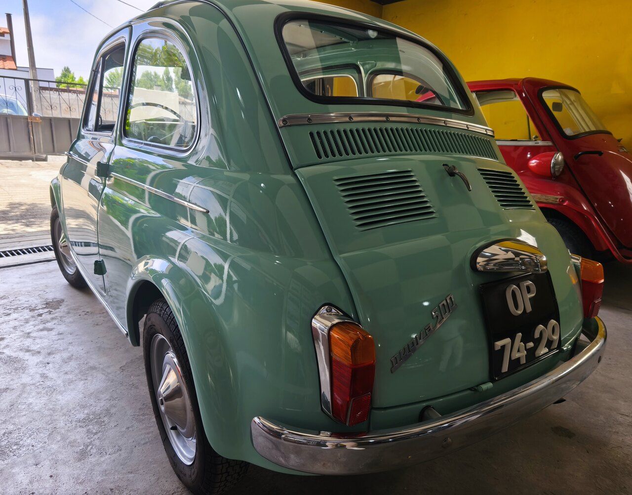 Deslumbrante exemplar do icónico Fiat 500 D de 1961, apresentado na encantadora cor original Verde Chiaro (ref. 372), com interiores personalizados em verde e capota em cinza, respeitando a configuração original da época e em perfeito contraste.
