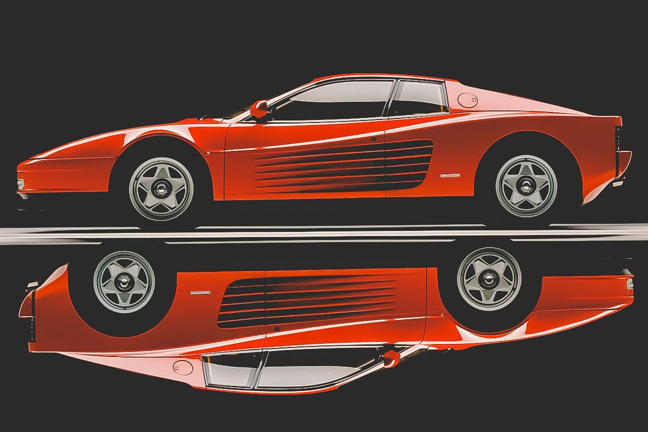 O Testarossa é talvez a prova de que, nos supercarros dos anos 80, a exuberância era a palavra-chave. Até 1984 o ícone italiano do momento era o Lamborghini Countach. Um modelo que, dinamicamente, era imperfeito, mas que aliava performances notáveis a um desenho que não tinha semelhança com nenhum veículo real. O rival de Maranello era então o 512 BB, um carro que tinha uma silhueta não muito diferente do 308 GTB, mas em feio. Antes de partir para o esquecimento, o 512 BB deixou em testamento o poderoso e robusto motor “boxer” e, para o vestir, a Ferrari entrou em territórios inexplorados. Pininfarina esqueceu os padrões clássicos da marca e criou um dos desportivos com mais presença alguma vez desenhados e que, apesar de não ter qualquer laço estético com o passado era, inequivocamente, um Ferrari. Lá dentro, só a grelha cromada do selector é reconhecível. Apesar de geométrico e minimalista, o interior é confortável e refinado, como nenhum superdesportivo até então.