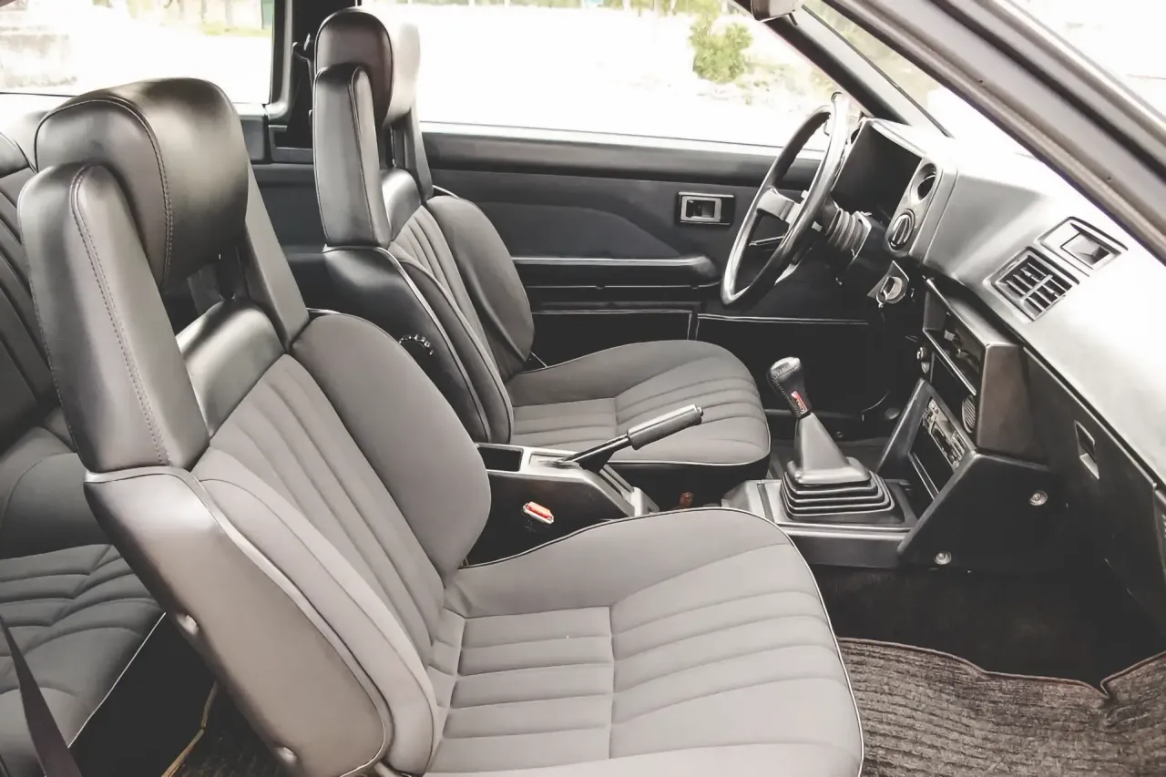Este Corolla AE86 é um exemplar da segunda fase, que se distingue desde logo pela secção frontal, em que a grelha tradicional deu lugar a um painel plástico vidrado, com uma abertura para refrigeração.