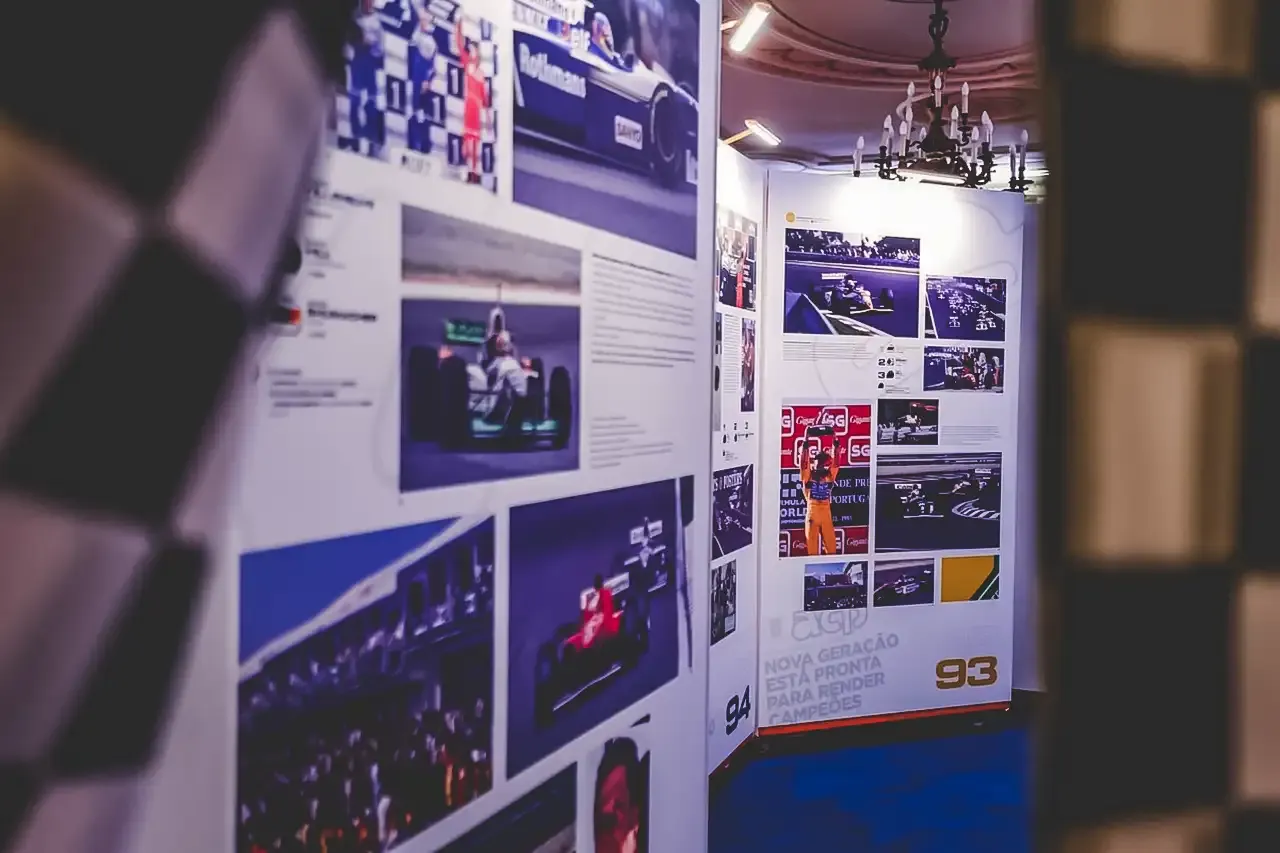A exposição conta ainda com painéis infográficos, fatos e capacetes de pilotos como Ayrton Senna, Pedro Lamy, Nicha Cabral eTiago Monteiro, bem como memorabilia, que contam a história dos anos Dourados do Grande Circo em Portugal.