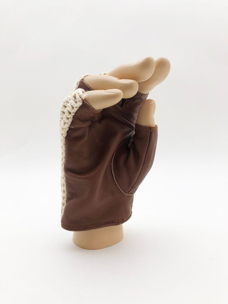 Luvas sem dedos, clássicas e intemporais em pele e crochet de algodão natural para condução de carro (clássico ou moderno). Luvas de alta qualidade, em pele genuína e algodão natural, macias, com excelentes acabamentos, de excelente durabilidade e construídas de forma tradicional. Fecho com mola para maior segurança. Excelentes luvas a um preço acessível!
