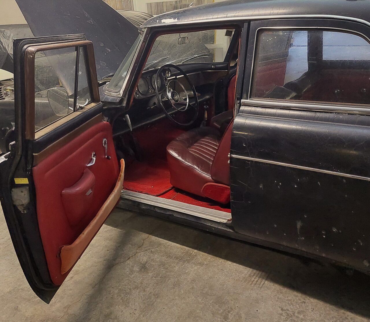 Os interiores estão mais sujos do que danificados, mantendo-se muito honestos para a idade, destacando os bancos em couro sem rasgos, as alcatifas sem desgaste significativo e as madeiras completas, sem ranhuras ou peças partidas, apenas a necessitar de tratamento e revitalização
