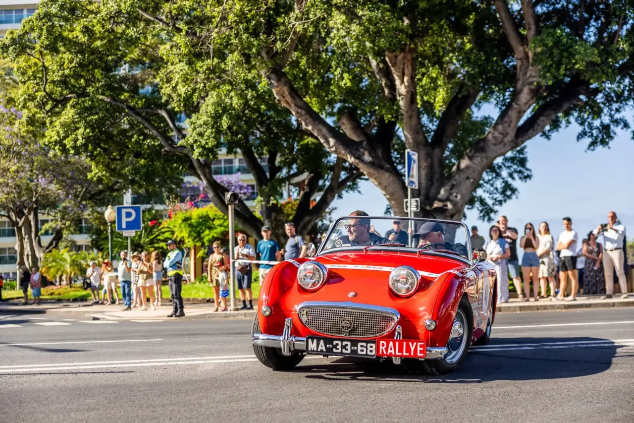 Na manhã de domingo, 57 máquinas alinharam-se para percorrer o traçado histórico desenhado nas ruas do Funchal, para alegria do imenso público que se junta nos passeios, jardins e varandas.
