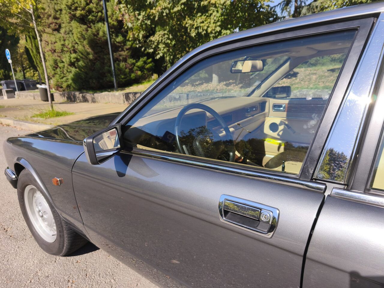 A sua pintura cinza metalizado brilha sem riscos nem imperfeições, complementada por um interior em pele bege original, suave e sem defeitos, que mantém todo o charme e requinte típicos da Jaguar.