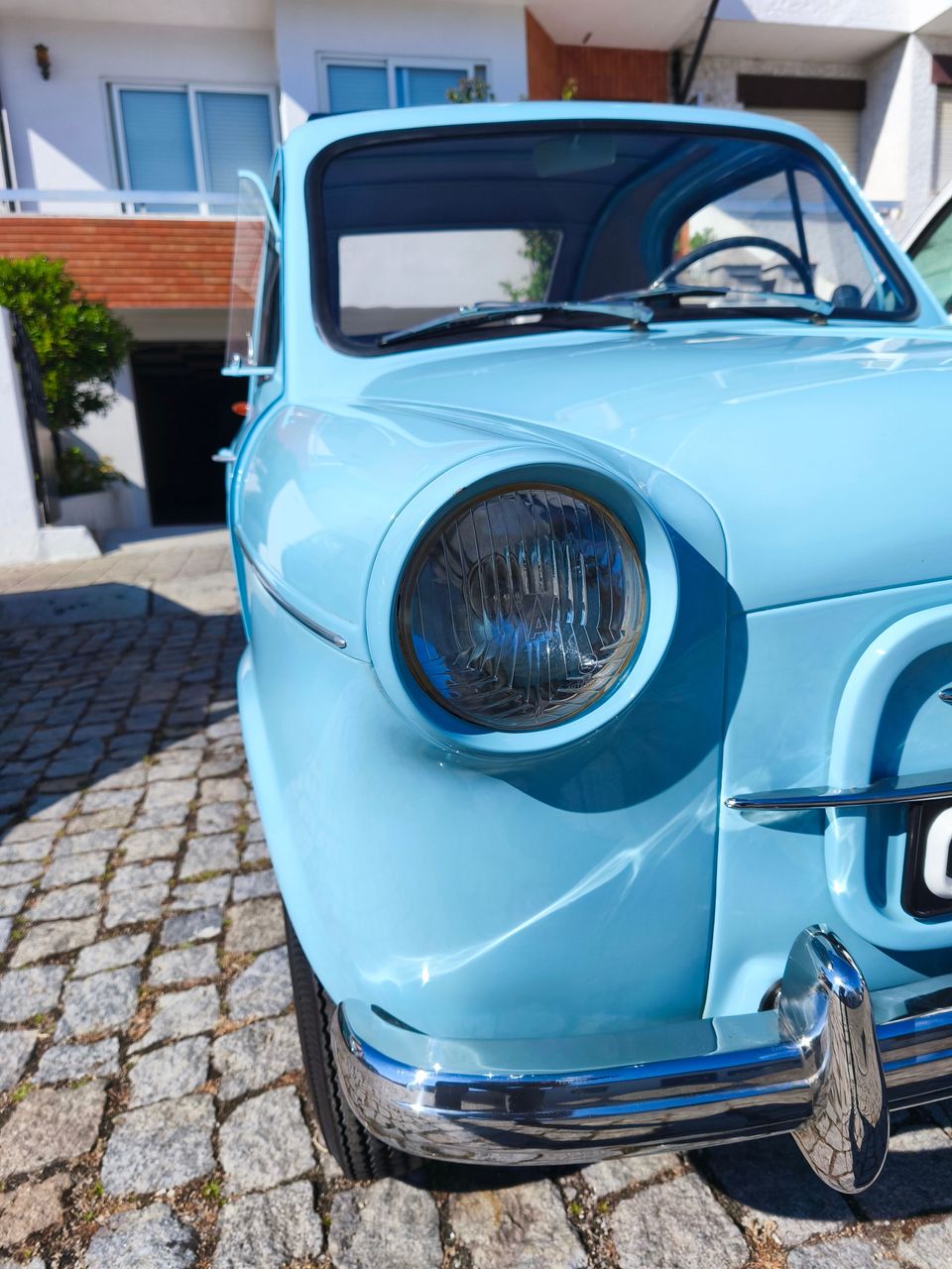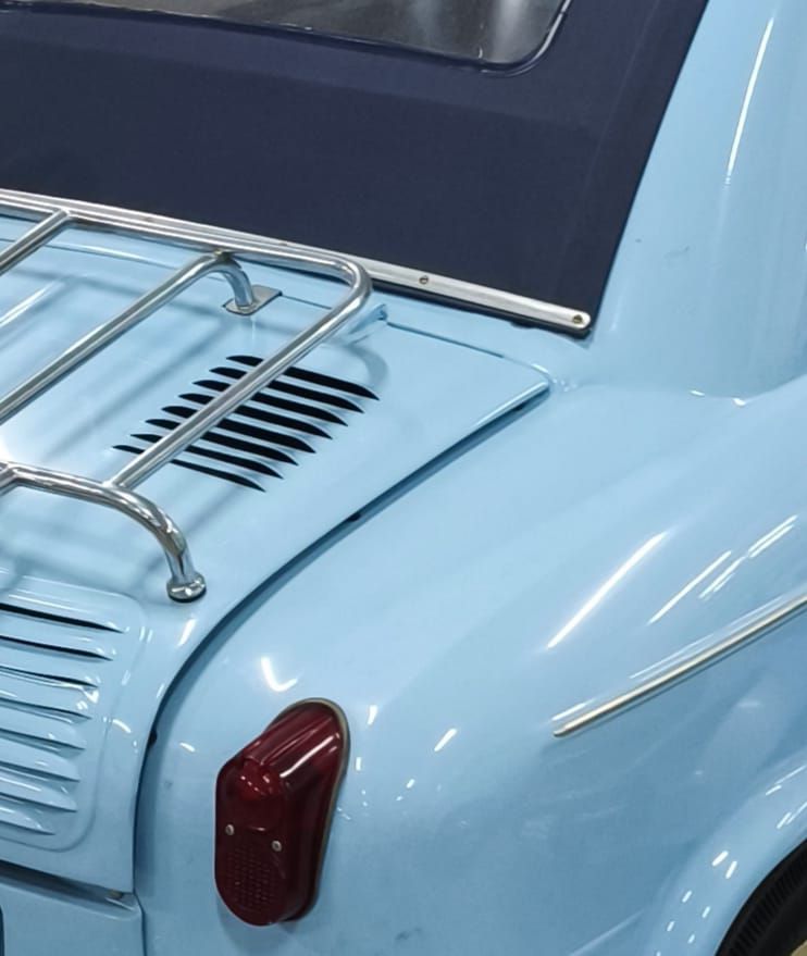 Apresenta-se num elegante azul claro, cor de época, com interior em tecido original restaurado, respeitando os materiais e acabamentos da versão de fábrica.