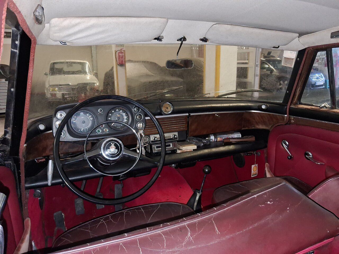 Os interiores estão mais sujos do que danificados, mantendo-se muito honestos para a idade, destacando os bancos em couro sem rasgos, as alcatifas sem desgaste significativo e as madeiras completas, sem ranhuras ou peças partidas, apenas a necessitar de tratamento e revitalização