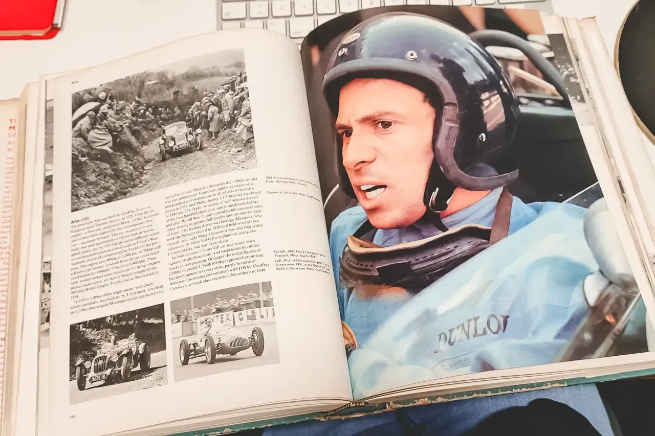 A Encyclopaedia of Motorsport chegou-me num lote de livros e anuários que comprei à distância a um entusiasta de Cascais que não cheguei a conhecer, mas que, definitivamente, não era da minha geração e que, provavelmente, não tinha entusiastas na descendência. A compra aconteceu entre gestos de um cavalheirismo e elegância que já não existem. Os livros foram entregues na Old Garage Cascais, do meu amigo Duarte Pinto Coelho, e chegaram a mim dias mais tarde, pelas mãos de outro amigo.