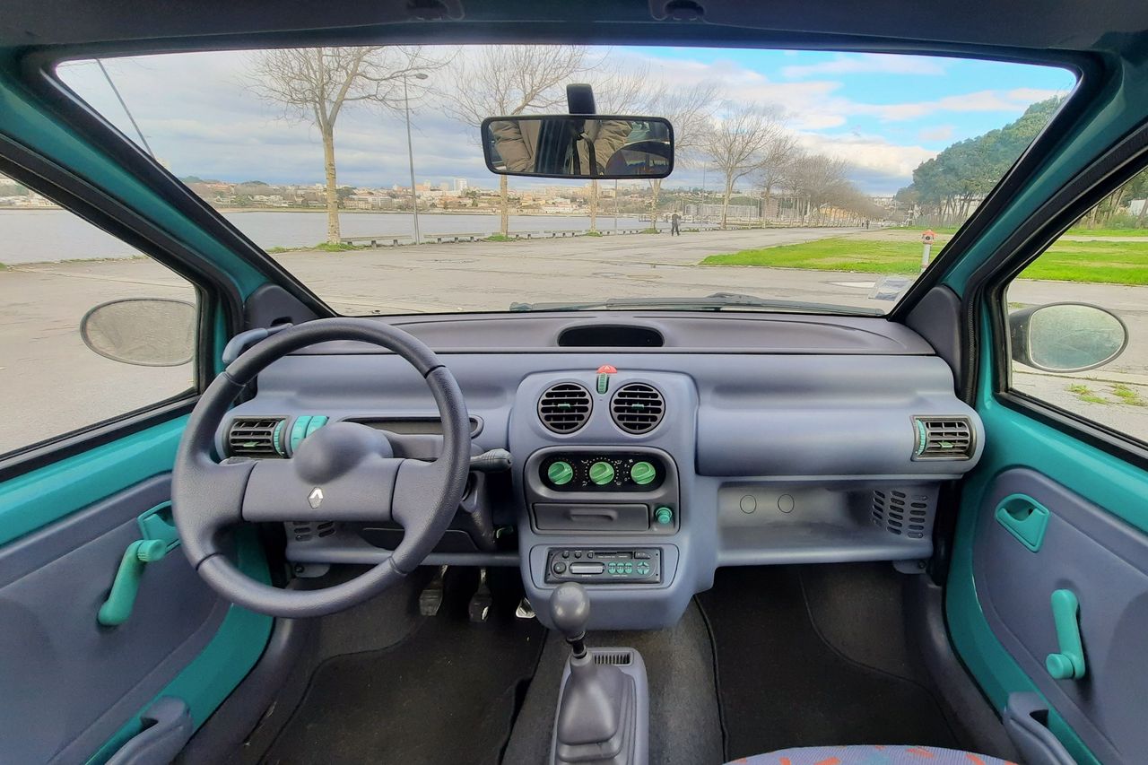 Este exemplar é do final de 1993 e, portanto, da primeiríssima geração do modelo. Os "Twingómanos" saberão que os exemplares com uma única luz interior do lado passageiro e com a abertura da porta traseira apenas por chave, são escassos e particularmente procurados. Este é um desses.