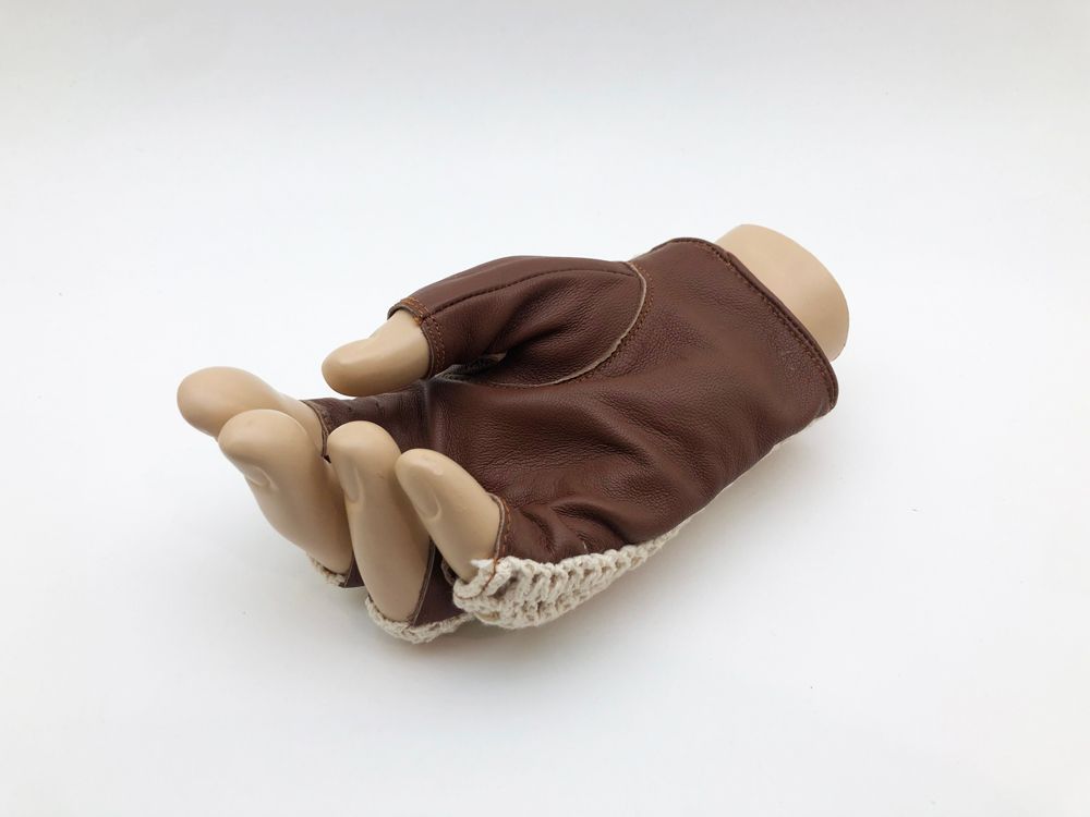 Luvas sem dedos, clássicas e intemporais em pele e crochet de algodão natural para condução de carro (clássico ou moderno). Luvas de alta qualidade, em pele genuína e algodão natural, macias, com excelentes acabamentos, de excelente durabilidade e construídas de forma tradicional. Fecho com mola para maior segurança. Excelentes luvas a um preço acessível!