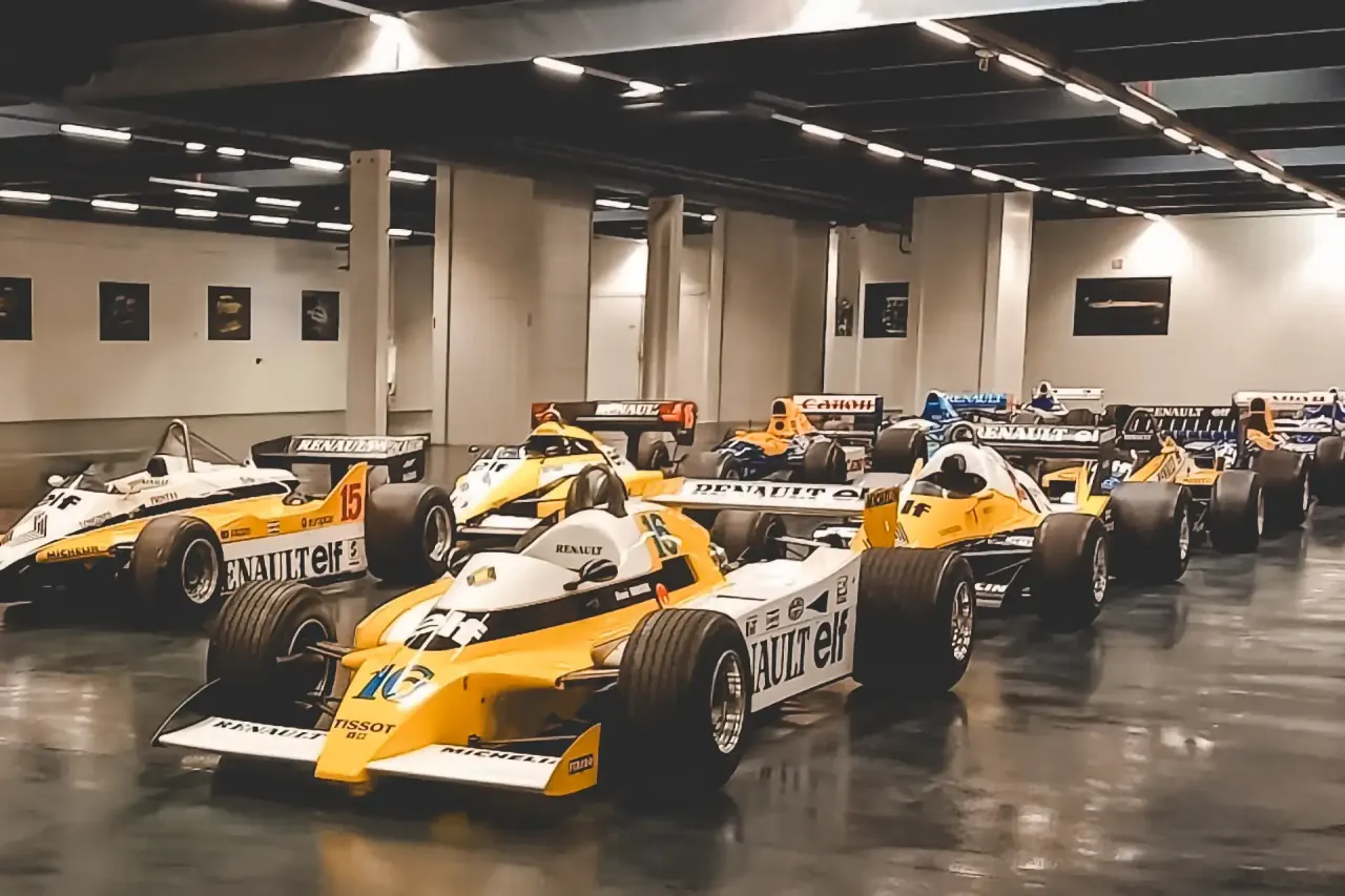 Entre os modelos icónicos estão o Renault Alpine A 442 (1978), o Fórmula 1 RE 40 (1983) pilotado por Alain Prost, o RE 30-B9 (1982) e o Lotus 95 T (1984) pilotado por Nigel Mansell.