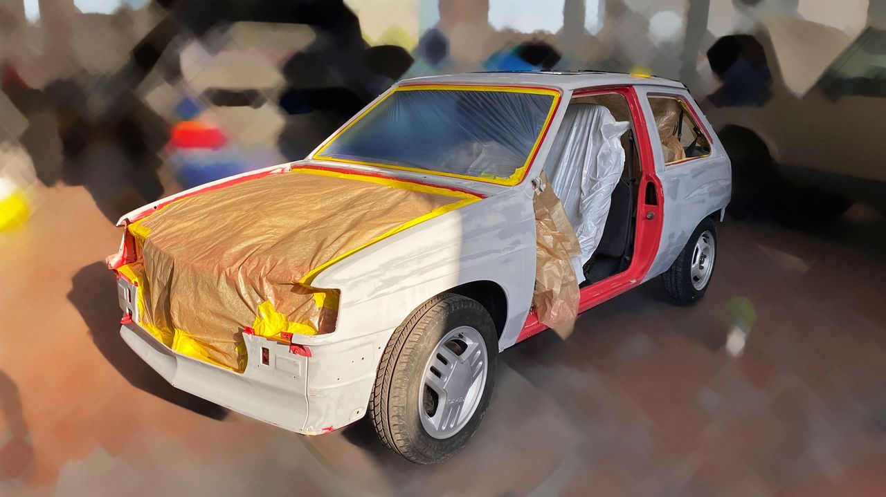 A pintura estava queimada pelo sol, um problema comum nos carros vermelhos desta época. Inicialmente, o carro foi parcialmente polido para preservar a pintura original, mas nunca ficou tão bonito como o desejado, pelo que foi repintado. Foi desmontado corretamente para garantir uma pintura de alta qualidade e não apresentava pontos de ferrugem.