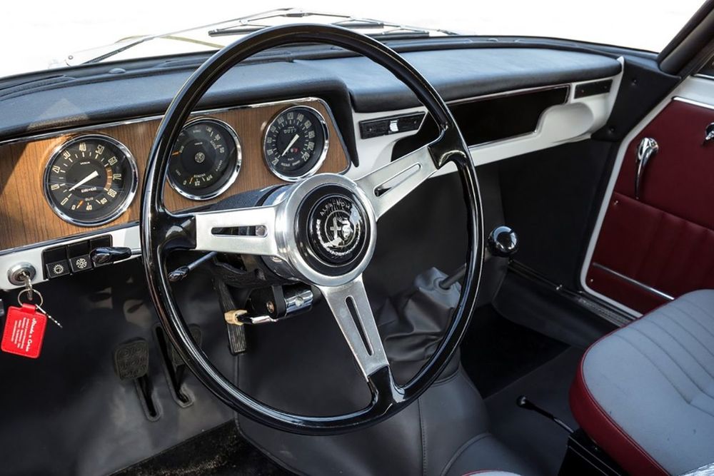 Nesta altura, o Giulia estava homologado como um automóvel de seis lugares, graças ao banco dianteiro corrido, só possível graças ao comando da caixa na coluna de direcção.