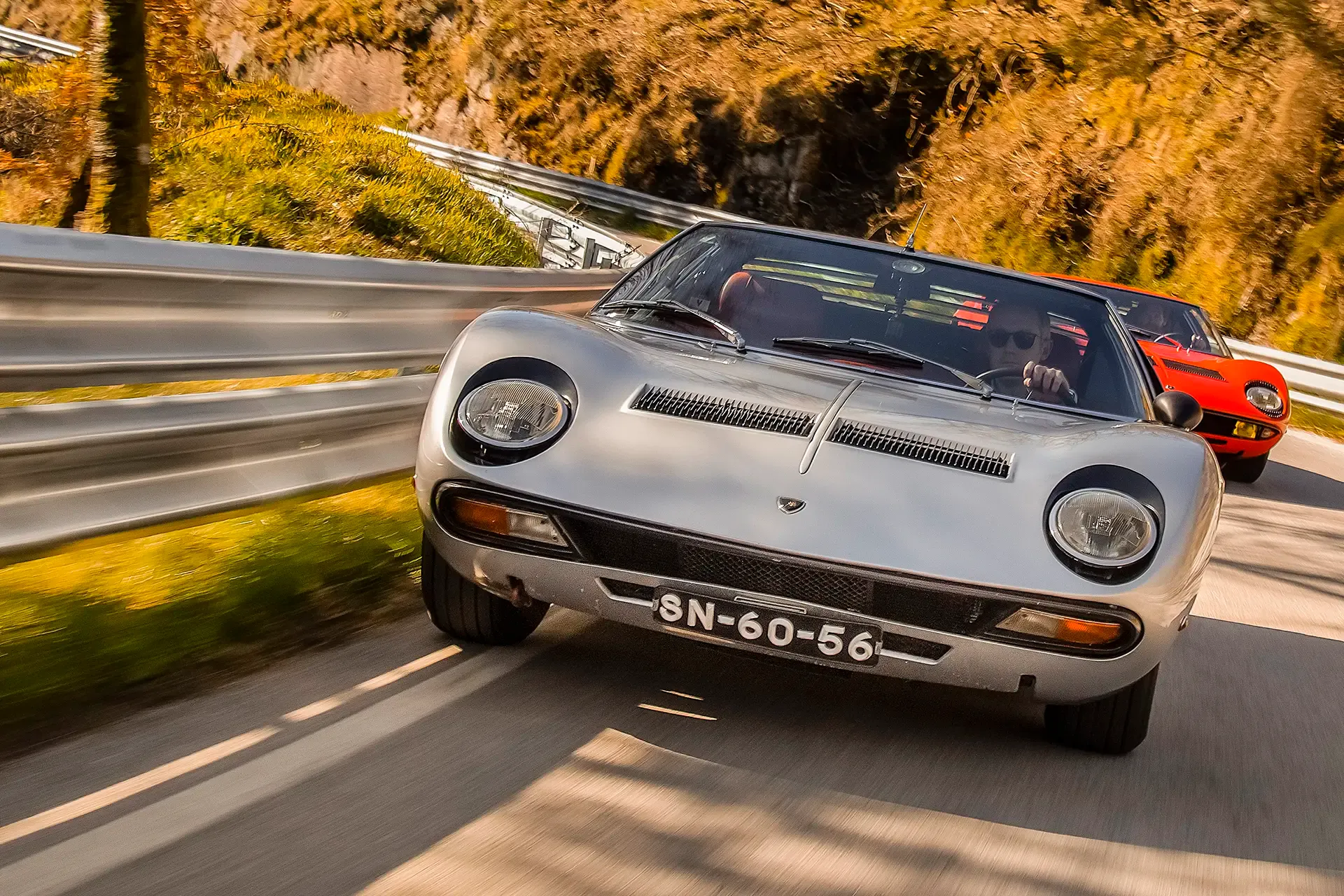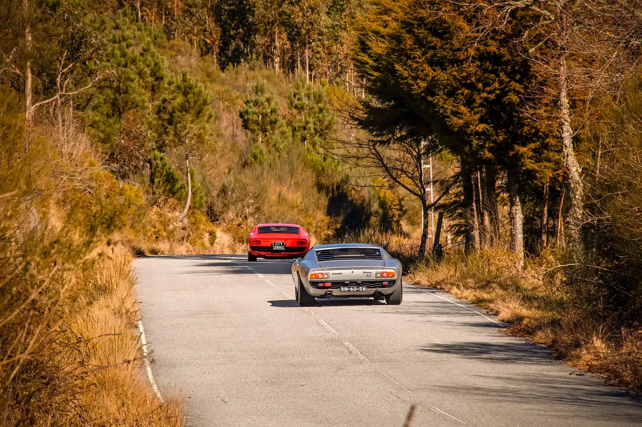 Nem sei como tudo aconteceu tão rápido. Foi apenas há minutos que cheguei e já estou a subir a rampa do Caramulo. Agarro o volante do Miura SV com a mesma expressão confiante de um miúdo no primeiro dia de escola. Enquanto obedeço aos gestos dos fotógrafos, surge a silhueta perfeita do outro Miura pelo canto do olho e tenho de me posicionar milimetricamente se não quiser criar uma embaraçosa e muito cara “carga de ombro” ao André Villas-Boas.