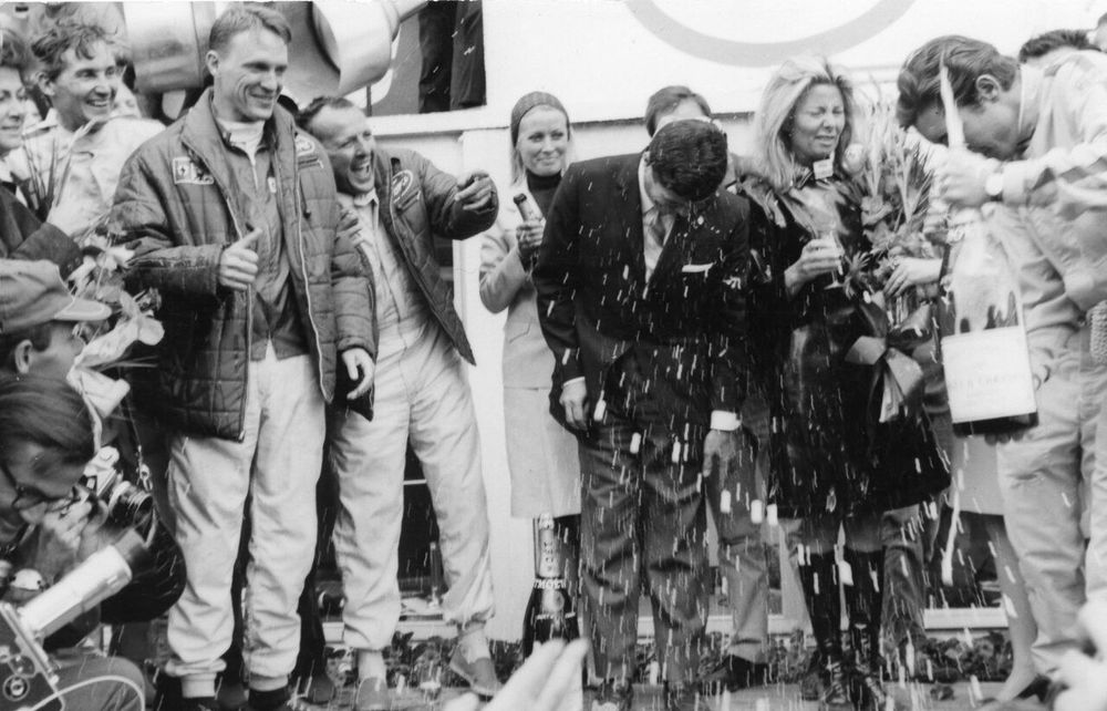 However, the most indelible mark that Gurney left in history on June 11, 67, was the unusual way in which he decided to celebrate. Euphoric, he shook the bottle of traditional Moët and made a shower of champagne that didn't even spare Henry Ford II and his wife! A.J. Foyt, amazed, said to him: “Look, it’s your boss you’re getting wet!”