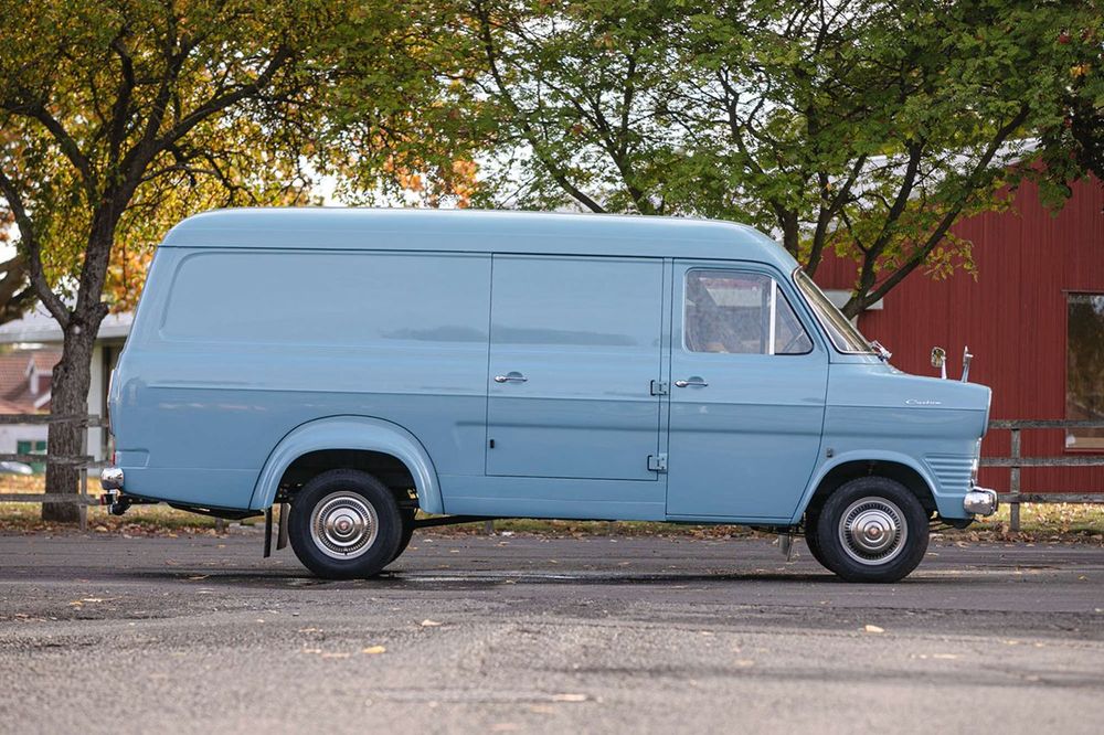 Este exemplar é do face-lift da MkI, que chegou ao mercado em 1971 e que se distingue pela grelha mais pequena de cantos redondos. É de chassis longo e com rodado duplo, num bonito tom azul-claro. Segundo a leiloeira, este exemplar era um pedido de encomenda, pelo que tem características pouco comuns, como porta de carregamento lateral de ambos os lados, portão traseiro basculante (em vez de duplo de abertura vertical), bancos especiais de vinil perfurado e tablier com acabamento em vinil cor de madeira e caixa com overdrive. Está ainda equipada por um leitor de cartuchos de oito pistas e tampões especiais da época. A cereja no topo do bolo é o facto de marcar apenas 11.000km que se crê serem reais.