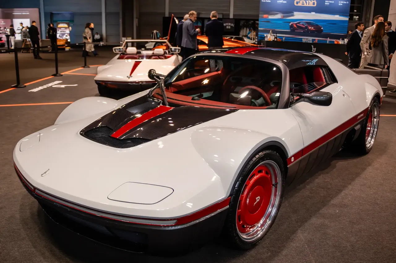 Os restomod também têm lugar nesta área do salão e o mais famoso de todos é talvez o Porsche 928 transformado pela Nardone. Este trabalho mostra o quão actual permanece este desenho dos anos 70. A actualização estética é bem proporcionada e contida, e o nível dos acabamentos tem uma qualidade excepcional.
