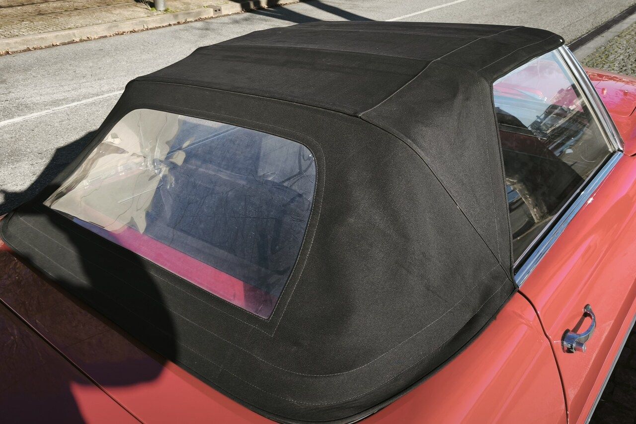 Muito bem mantido até a data e com toda a manutenção em dia, este exemplar de 1965 de cor vermelha, ainda com um bom nível de brilho na pintura, dispõe de capota de lona preta e o característico hard-top, estilo “pagode”, pintado na cor da carroçaria. Veículo com interiores em pele preta e o tradicional tablier de madeira ainda em estado muito aceitável. O veículo encontra-se em muito boa condição de preservação.
