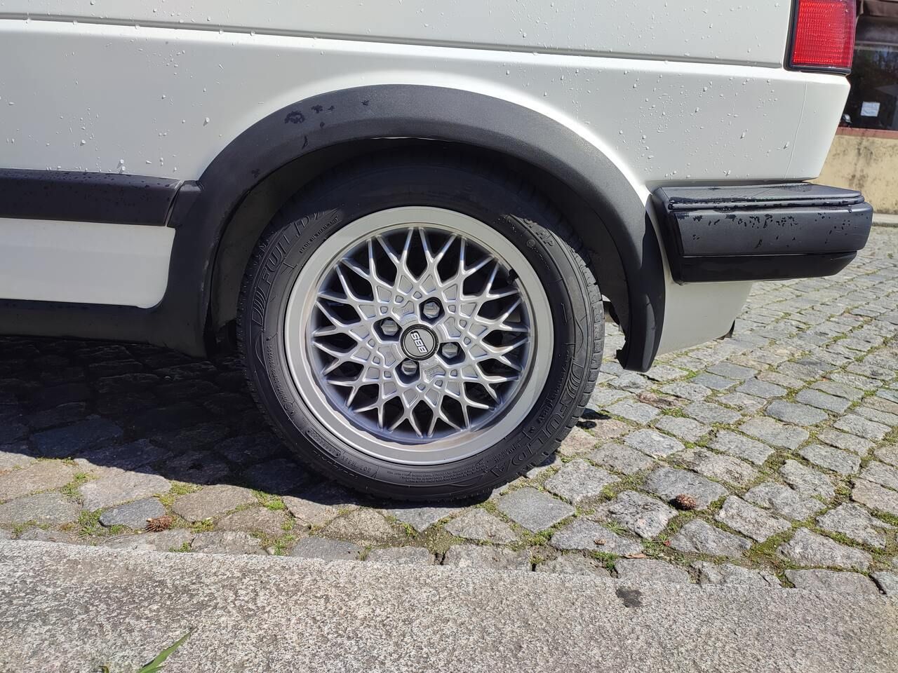 Enérgico VW Golf GTI 16 V de 1988, em muito bom estado e com bastante equipamento de série, contando com computador de bordo, bancos desportivos, jantes de liga leva BBS com 4 pneus novos da marca FULDA na medida 195/50 R15, vidros elétricos e fecho centralizado, ABS, AC e Teto de abrir.