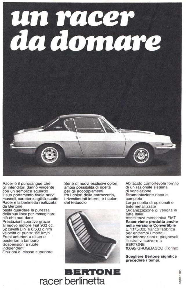 Bertone Racer Berlinetta, nacional, completamente original e em excelente estado mecânico, com revisão efectuada e várias peças substituídas.