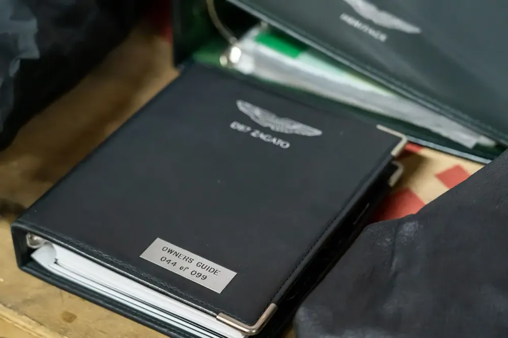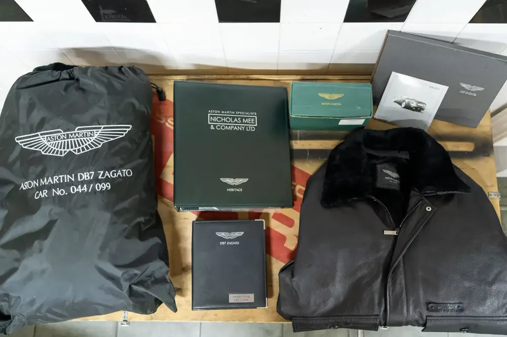 Esta é a unidade número 44 de 99 e com apenas 9.000 milhas está em perfeitas condições de colecção. Possui todos os detalhes que farão disparar o barómetro dos apreciadores de peças exclusivas: capa protetora da carroçaria personalizada e manual do condutor com o número do carro, maqueta da mesma configuração, blusão de cabedal oficial Aston Martin Lifestle e dossier histórico com detalhes.