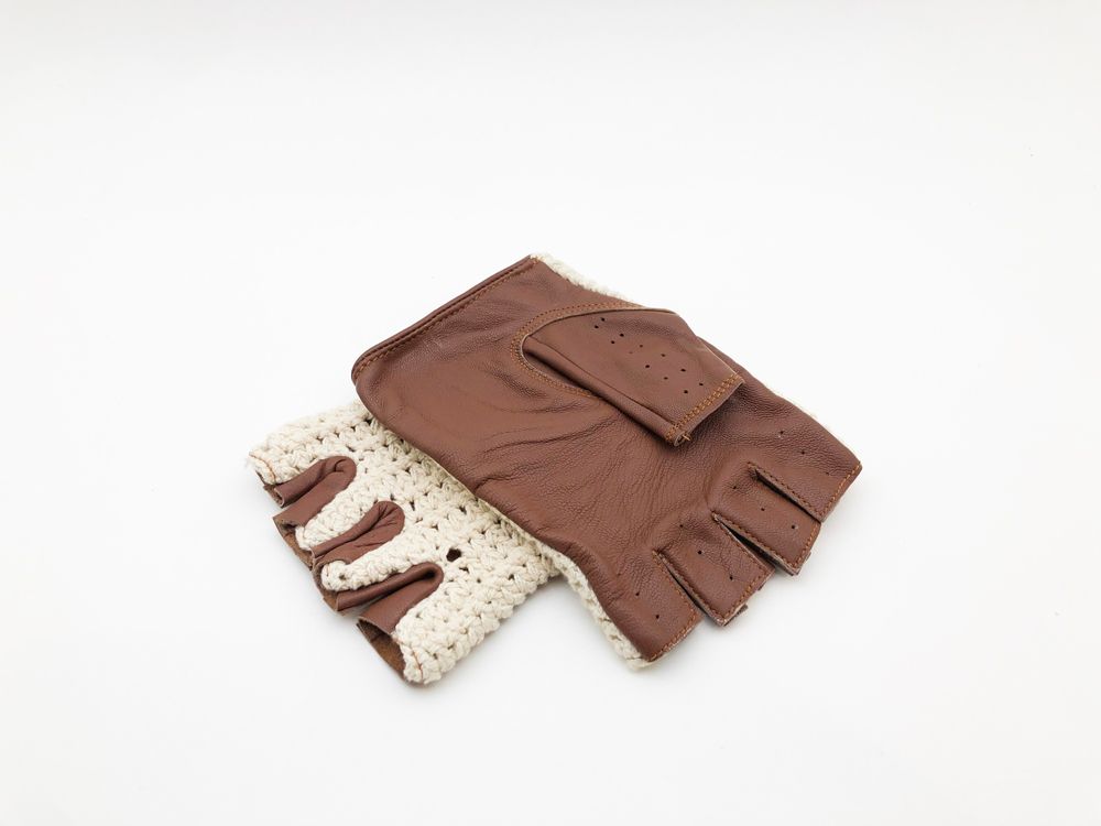 Luvas sem dedos, clássicas e intemporais em pele e crochet de algodão natural para condução de carro (clássico ou moderno). Luvas de alta qualidade, em pele genuína e algodão natural, macias, com excelentes acabamentos, de excelente durabilidade e construídas de forma tradicional. Fecho com mola para maior segurança. Excelentes luvas a um preço acessível!