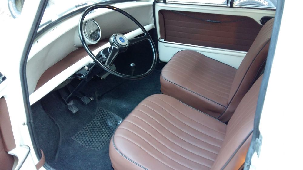 Rarissimo exemplar da produção da Morris da década de 60, esta "Van 850 1/4 TON" foi alvo de um restauro total e está em estado de concurso. Esta carrinha tem montado o invulgar kit original da B.M.C. que convertia a Van numa wagon de quatro lugares e vidro fixo na retaguarda.