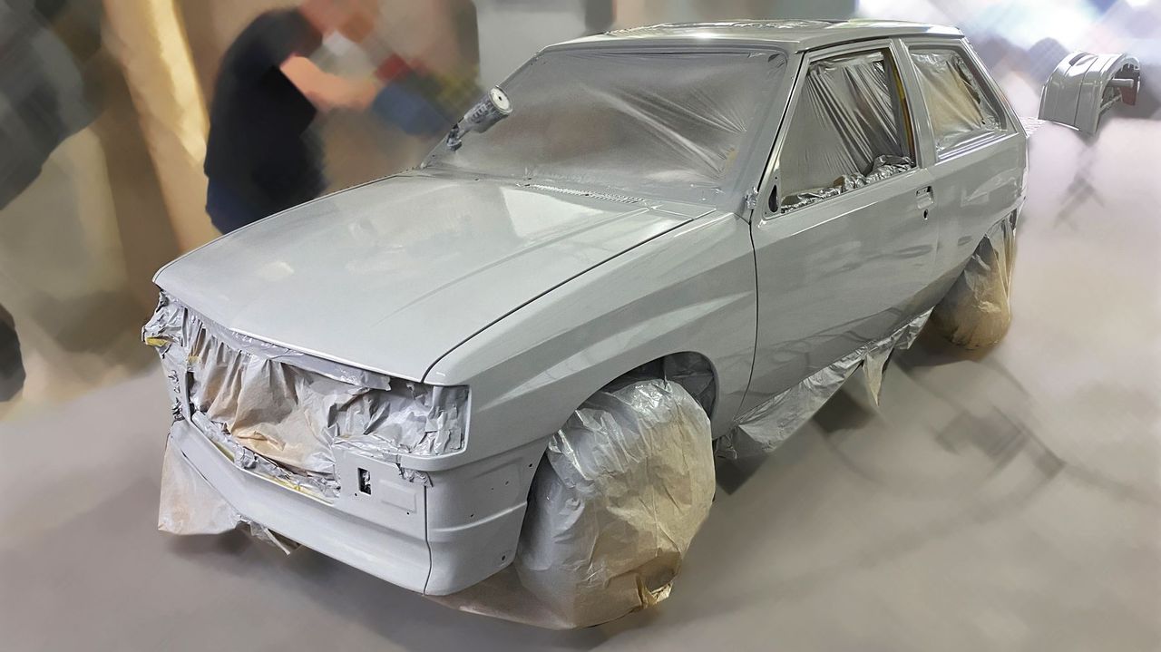 A pintura estava queimada pelo sol, um problema comum nos carros vermelhos desta época. Inicialmente, o carro foi parcialmente polido para preservar a pintura original, mas nunca ficou tão bonito como o desejado, pelo que foi repintado. Foi desmontado corretamente para garantir uma pintura de alta qualidade e não apresentava pontos de ferrugem.