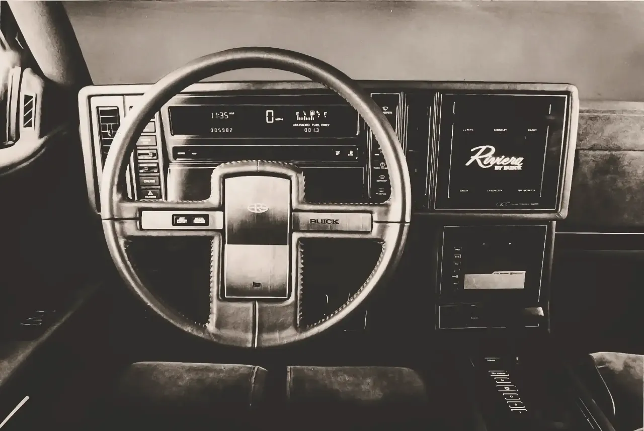 Buick Riviera 1986 de 1986 tinha uma funcionalidade dramaticamente à frente do seu tempo: um centro de controlo com ecrã táctil no centro da consola, precursor do tipo de interface hoje presente em praticamente todos os automóveis modernos.